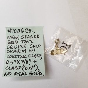 1026CH NEW Sealed Gold Tone Cruise Ship Charm. Can be attached to anything beacuse it has lobster clasp. Check out other listings in my closet for more great items. Combine and save. No precious metals, stones. No returns. Make an offer. Priced for its rarity and for how much it found elsewhere.