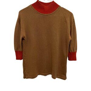 1032 Mango Collection Crop 3/4 Sleeve Mock Neck Pullover Sweater
