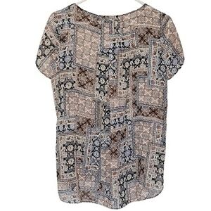 1037 * J. Jill Patchwork Print Blouse Cream Brown Size XS