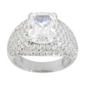 White Diamond Simulant 10.37ctw Cushion And Round, Rhodium Plated Sterling Silver Ring. Measures Approximately 1/2"l X 1/8"w Not Sizeable.