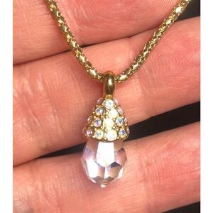 1046 Givenchy Gold Tone crystal briolette drop Pendant Necklace 16-18" long