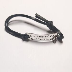 Charming Life Black Strand Silver Plate Engraved "She Believed She Could" Adjustable Bracelet