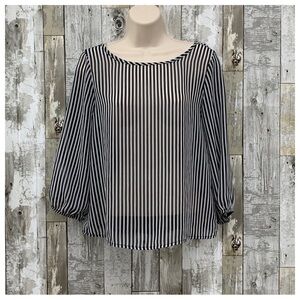 #105 Estam Large Bow Sheer Pin Stripe Reversible Blouse Shirt Top Tunic Small
