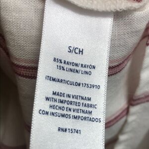 Embrace a relaxed elegance with this Splendid blouse, showcasing a boxy silhouette and a sophisticated mandarin collar. The white fabric is beautifully accented with red stripes, offering a timeless appeal. Perfect for any occasion, the 3/4 sleeves add a versatile touch to your wardrobe.
