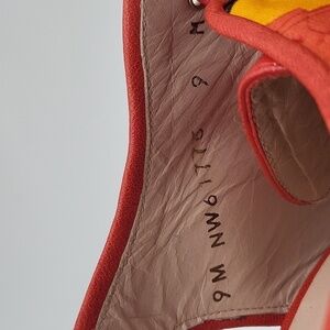 Make a bold statement with these eye-catching Stuart Weitzman platform wedges in size 9. Featuring a vibrant red, yellow, and white floral pattern, these shoes blend playful color with modern design. The lace-up front adds a unique twist to the slingback style, and the sculptural wedge provides both height and comfort.