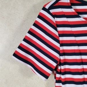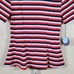 Anthropologie Eva Franco red, white, and blue striped peplum style ribbed blouse.