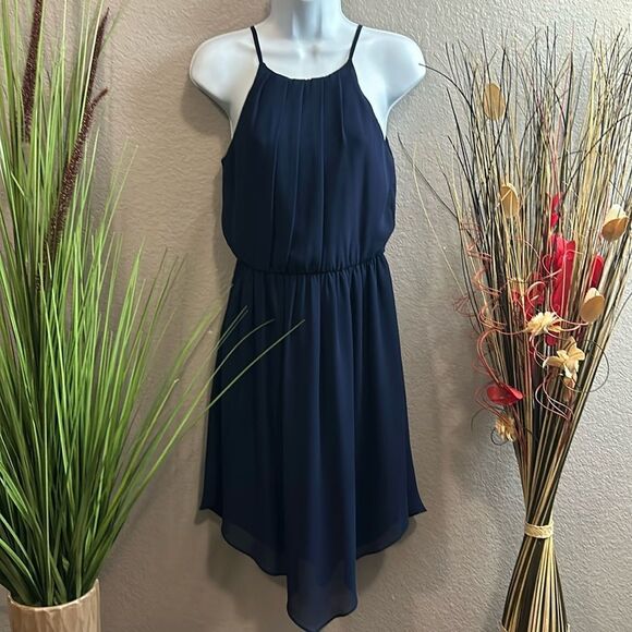 #105 I.N. San Francisco Navy blue sleeveless flutter, dress size Small