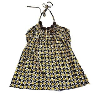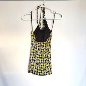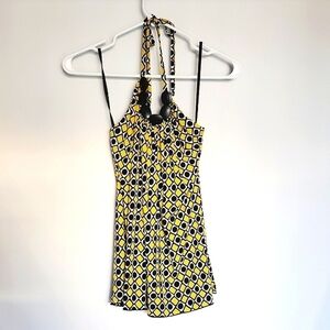 1062 * BCX Geometric Print Halter Top Yellow Black Size M