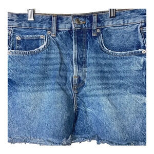 1066. Zara DENIM JEAN SHORTS FACTORY FRAYED HEMS SIZE 4 MEDIUM WASH IN COLOR