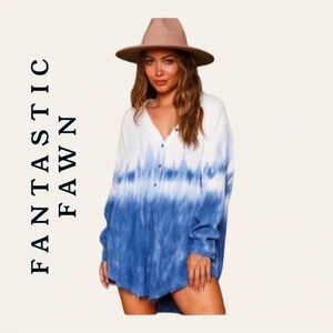 1067. FANTASTIC FAWN TAKE IT EASY BLUE TIE DUE BUTTON DOWN TOP SIZE LARGE OVER