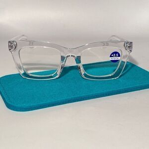 1068 Gretchen Reading Glasses 2.5 Square Clear Frames Oversize NWT