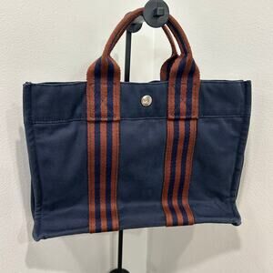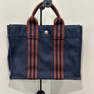 1068 HERMÈS Toile Fourre-Tout PM Tote Blue