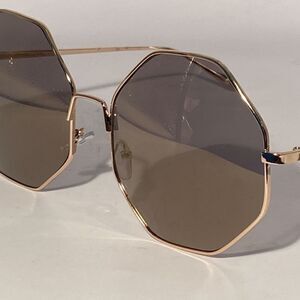 Hexagon Oversized Sunglasses Silver Metal Frames Grey Lenses New