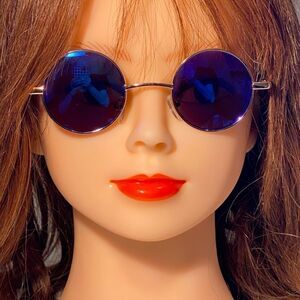 John Lennon Round Blue Mirrored Sunglasses Metal Frames New