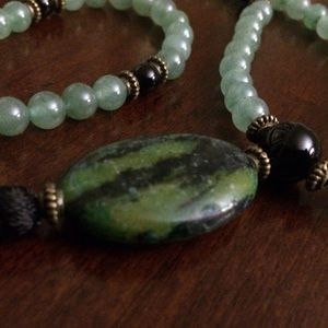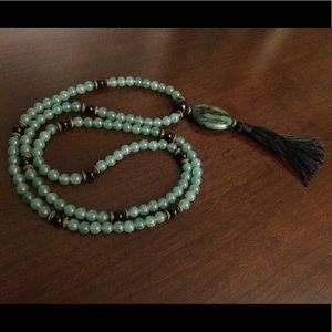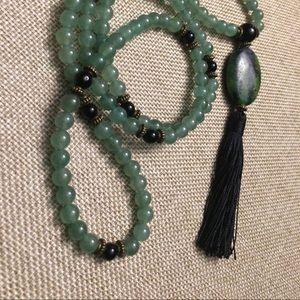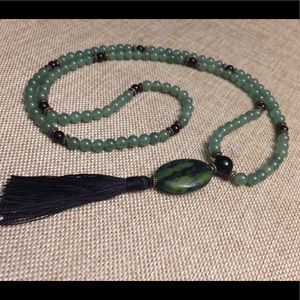 108 6MM Aventurine Bead Mala w/Onyx & Silk Tassel