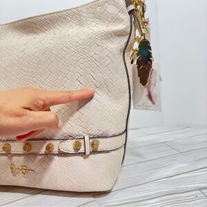 $108 JESSICA SIMPSON NESSA OVERSIZED BUCKET TOTE SATCHEL PURSE MACADAMIA NWT