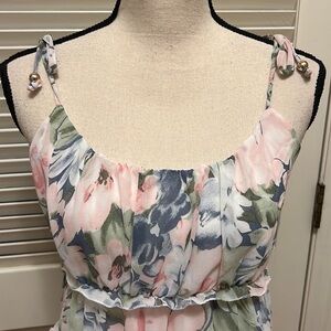 108. Round Neck Spaghetti Straps Floral Skater Minidress