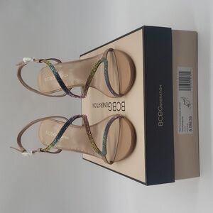 #BCBGeneration #RhinestoneHeels #RainbowSandals #PartyHeels #StilettoStyle #WomensShoes #Size8.5Shoes #HeelsWithBox #CrystalHeels #NWT