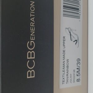 1087- BCBGENERATION Joliny Tan Rainbow Colors Women's Sandals Size 8.5 M NWT