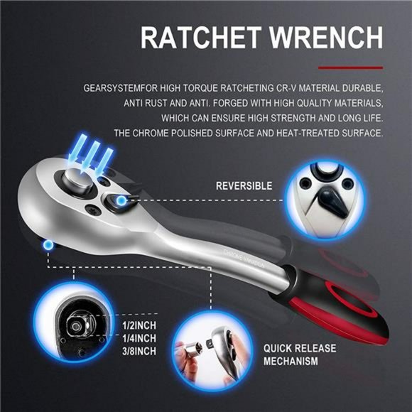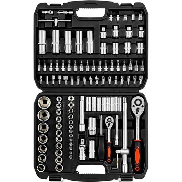 108Piece Socket Wrench And Metric 1/4 And 1/2 Drive Socket Set, Plastic Toolbox