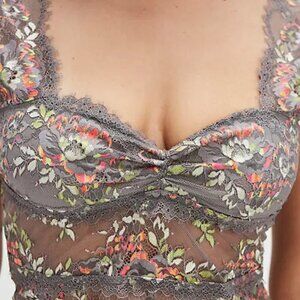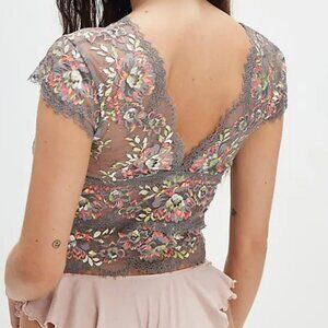 #109 NWT Free People Garden Party Lace Tee in Storm Frong