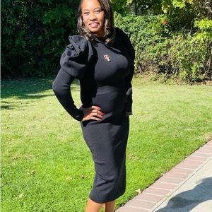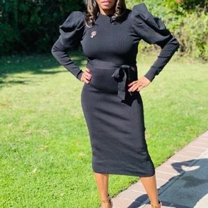 This Statement Puffy Sleeve Dress is a must-have addition to your wardrobe, with its versatile style. It features an round neckline crown shoulders, long sleeves, tie belt, and high-stretch material that hugs your curves perfectly to create an alluring look. Wear this sweater dress to your next event or out on the town—you’re sure to turn heads either way! Model is wearing a size medium.
