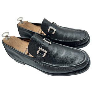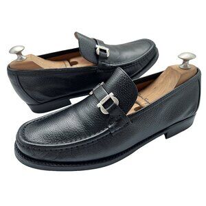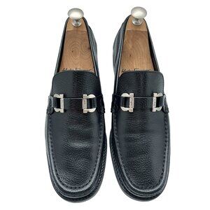$1090 Salvatore Ferragamo LOOP Mens Silver Gancini Bit Leather Shoes Loafers 8 D