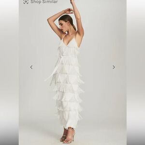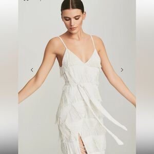 $1095 Retrofete Fringe Rebecca Dress white beaded maxi bridal party event XS