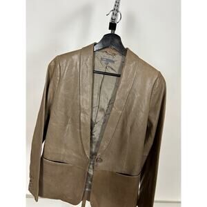 $1095 Vince Women Brown Tan Fitted Lamb Leather Blazer Jacket Size 2