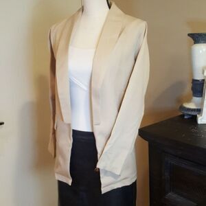 Cute khaki open blazer to layer with your Spring and Summer favorites. Faux pockets are decoration only. Brand new with tags. Super comfy to throw on for a quick zoom meeting or work lunch.