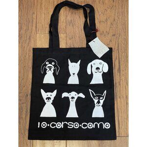 10•CORSO•COMO Black With Dogs Tote Bag Cloth With Tag Black And White