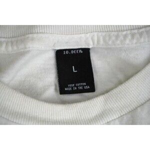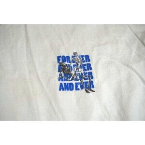This 10-Deep Men's Size Large Skeleton T-Shirt features a graphic print of a skeleton with the words "Forever and Ever" on the back, making it a statement piece of streetwear. Made of cotton with a crew neck and short sleeves, this lightweight shirt is machine washable and suitable for all seasons. The vintage design and limited edition branding add to its appeal, while the athletic fit ensures a comfortable and stylish look for the modern man. Made in the USA, this shirt is a must-have for fans of classic streetwear with a touch of edgy details.