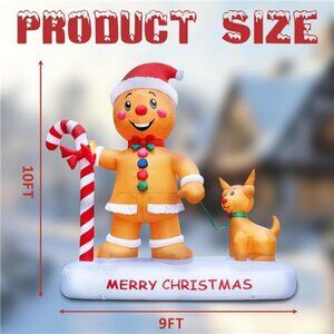 10FT Christmas Inflatables Gingerbread Man w/ Cute Dog Built in Bright LED Light