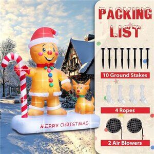 Easy to Set Up: The Christmas gingerbread man decoration Built-in blower. Just plug it in, and you will see gingerbread man and dog in your yard within a few minutes. Stakes and tethers can help you secure the decoration to the ground.