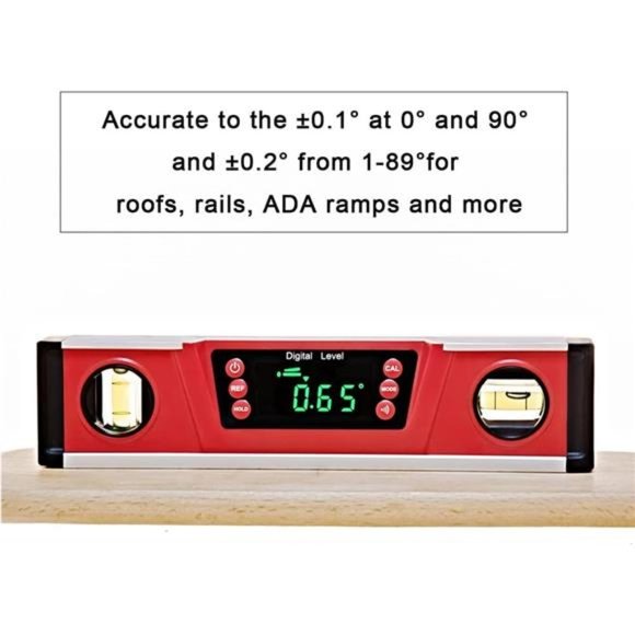 🧿HIGH-ACCURACY -- Accurate to the ±0.1° at 0° and 90° and ±0.2° from 1-89°.; displays angle and bevel readings in degrees, pitch IN/FT, mm/M, and percent slope. Great for roofs, rails, ADA ramps