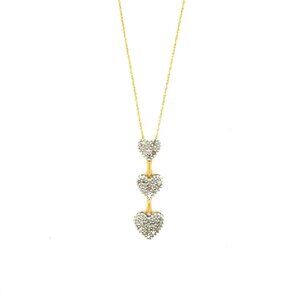10K Gold 3-Hearts Drop Pave Diamond Necklace
