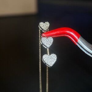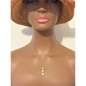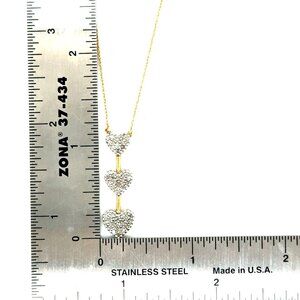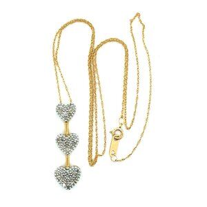 Real 10k Yellow Gold Pave Diamonds 3-Hearts Drop Pendant Necklace , REAL GOLD, NOT GOLD PLATED OR GOLD FILLED.