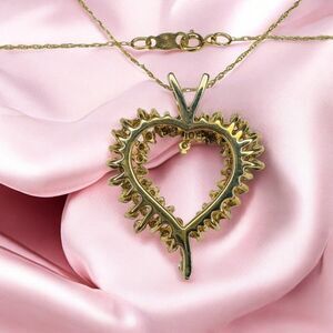 A beautiful classic! Every woman needs a classy diamond necklace! This is a solid 10k yellow gold Round Cut 1.20 cttw Natural Diamond Cluster Diamond cluster Diamond Heart Necklace with a solid 10k gold chain 18". Weighs approximately 4g. Pendant measures 27x22mm with 66 diamonds! Would make an excellent gift to a loved one or for oneself! Valentines Day Gift with Fast & Free shipping & Gift wrapping!