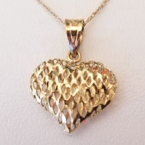 Vintage 10K Gold Open Work Heart Pendant with Chain