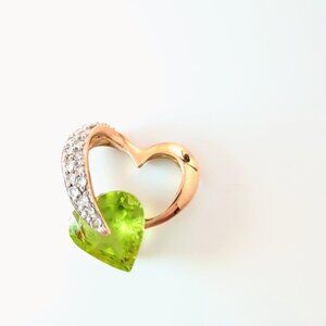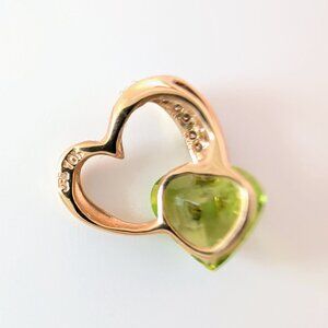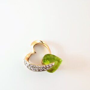 10K Gold Heart Pendant With Green Peridot & Diamond Accents