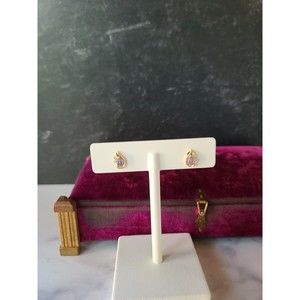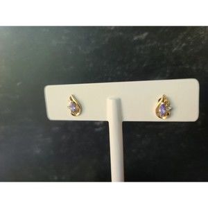 10K Gold Marquise Cut Lolite And Cubic Zirconia Accent Stud Post Earrings