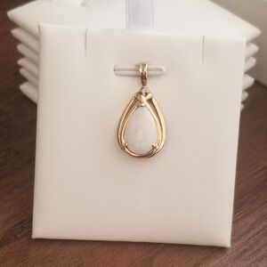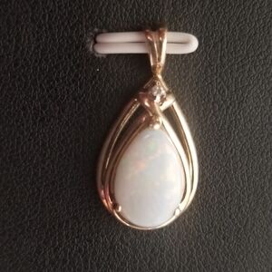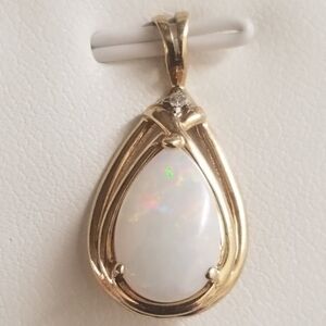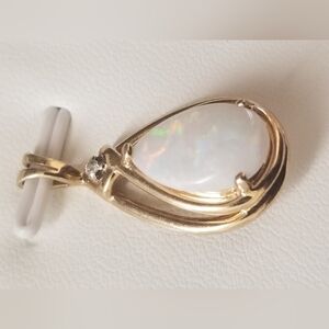 Vintage Large 10K Gold Opal Pendant w/ Diamond Accent
