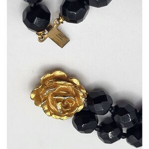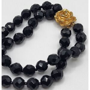 10K Gold Rose Box Clasp Faceted Jet Bracelet 7.5in | Materials: acrylic, 10k gold rose | Length: 7.5in | Clasp: box clasp | Signed? no | Excellent vintage condition