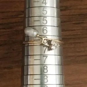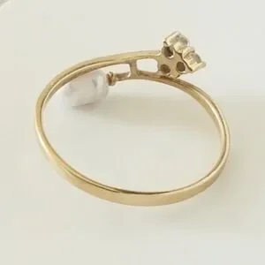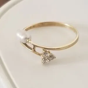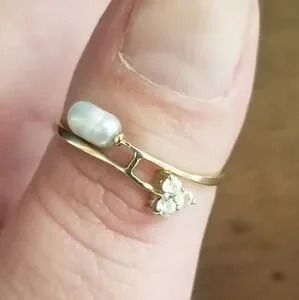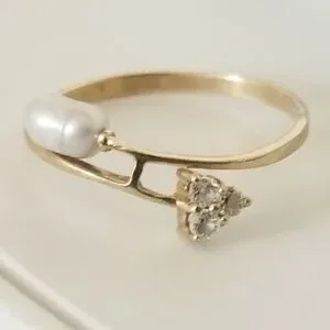 Vintage 10K Gold Rice Pearl & Cubic Zirconia Ring