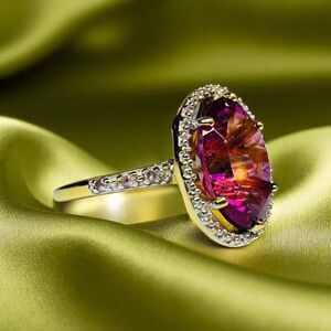 A wonderful addition for any collection, this Estate Vintage solid 10k Yellow gold Natural Indian Rhodolite Garnet Ring is beautiful! This is an excellent piece of estate jewelry. It features a beautiful prominent vivid 6.5cttw Rhodolite Garnet surrounded by 6 round cut pave set natural amethysts!