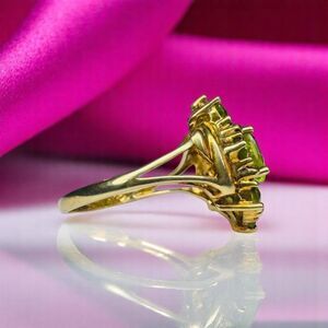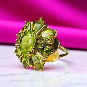 10K Gold- VINTAGE- Natural Peridot Cluster Ring -Size 6 -2.5CT- Flower Ring -3g