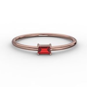 Solid 10k Rose Gold Baguette Cut Ruby CZ Ring, MN102
