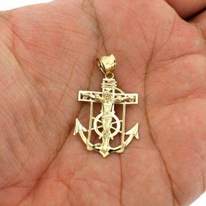 10KT Real Gold Jesus Crucifix Anchor Cross Charm Pendant
