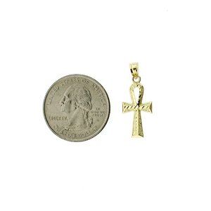 10KT Real Gold Diamond Cut Egyptian Ankh Cross Charm Pendant