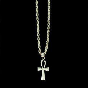 10KT Real Gold Diamond Cut Ankh Cross Pendant and 2.5MM Rope Chain Set